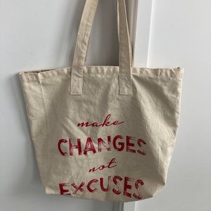 Can with a lot inside! It has the quote: "make changes not excuses" :) Very gently used, 100% cotton fabric. can we washed.