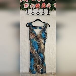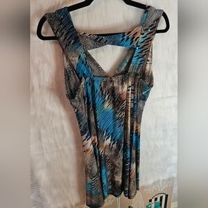 Touch Express Aqua Sparkle Twist-Back Mini Party Dress
