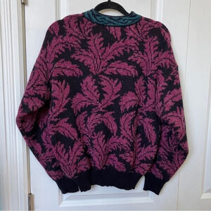 Cozy, soft, slightly fuzzy vintage sweater with a pretty purple botanical pattern with teal neck accent. Drop shoulder style in an oversized, 90s fit. Made of 80% acrylic and 20% nylon. EUC.