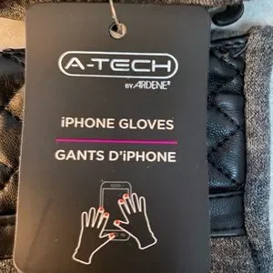 Winter gloves designed for use with touch screens. Soft fabric with quilted faux leather/metal details and soft faux fur like lining.
