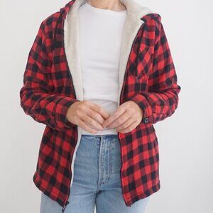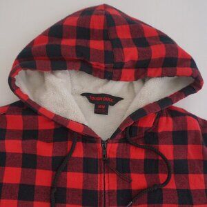 Tough Duck Red Black Buffalo Plaid Teddy Lined Outdoor Hooded Zip Up Sweater M