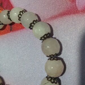 Tourmaline white black and Light Pink marking on the stones and Bronze floral spacer