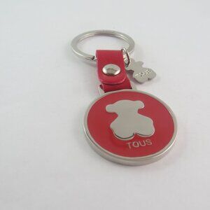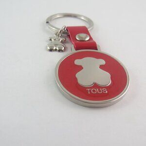 Tous Teddy Bear Keychain – Red Leather Key Ring with Silver Bear Charm,