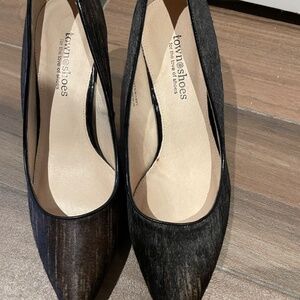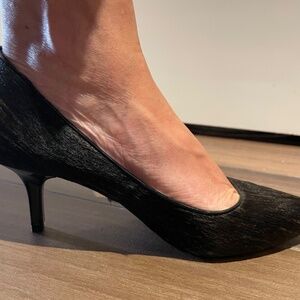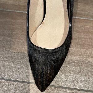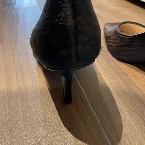 Elevate your Fall/Winter wardrobe with these spectacular chocolate brown two tone calf hair pumps. Leather lining and socks and soles. Like new condition. 2 3/4“ heels. Only worn once. No box.