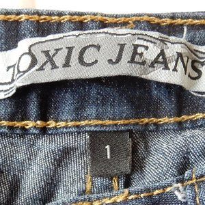 Low rise straight leg Capri jeans with 1 button closure and cuffs at the bottom.