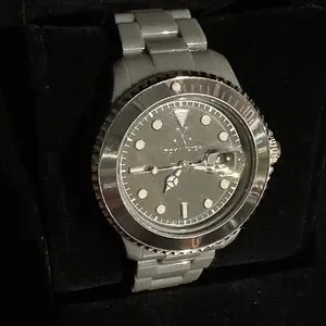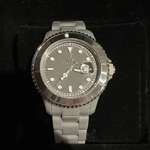 Toywatch Grey Plastic, Stainless Steel, Round face, 12 hour Dial with Date Indicator, mineral Crystal, Rotating Bezel Screwdown crown, second hand, Water Resistant