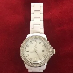 White ToyWatch with crystals Quartz movement Bracelet band Deployment push button clasp