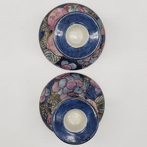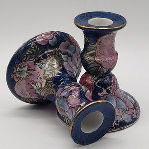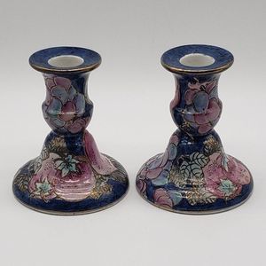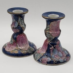 Toyo Porcelain Hand Painted Lilac Blue Gold Fruit Candle Holders