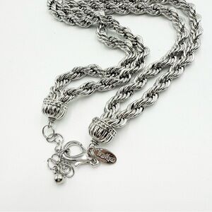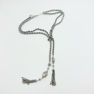 Traci Lynn Chain Long Silver Tone Heavy Chain Necklace Glass/crystal Pendant