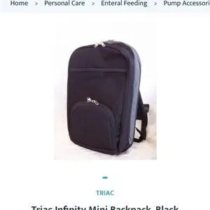T1 Infinity Mini Backpack in black offers a sleek and functional design for everyday use. Two separate pouches for solution and pump strap for easy access. Additional pockets for personal items.