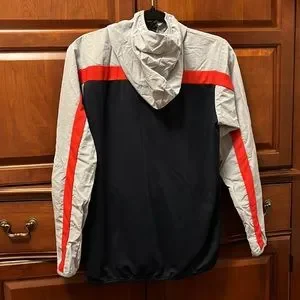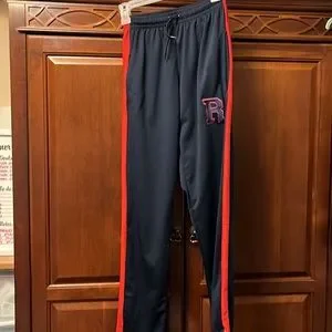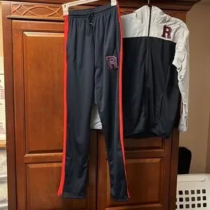 Gray Top and Blue Bottom with lines of Red and R Initial