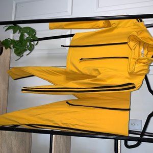 yellow and black tracksuit, form fitting and stretchy