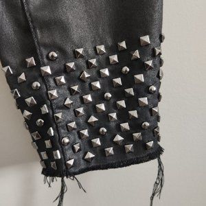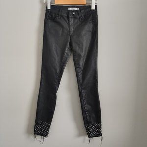 Tractr Black skinny jeans Mid rise Distressed cut bottom hem with studs Shiny black Size 10 New with out tags