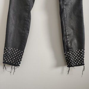 Tractr Black Shiny Skinny Jeans Studded Distressed Size 10