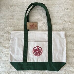 Stylish and durable, this Trader Joe's canvas tote bag features a striking black and purple design. Perfect for everyday use, it combines functionality with a trendy look.