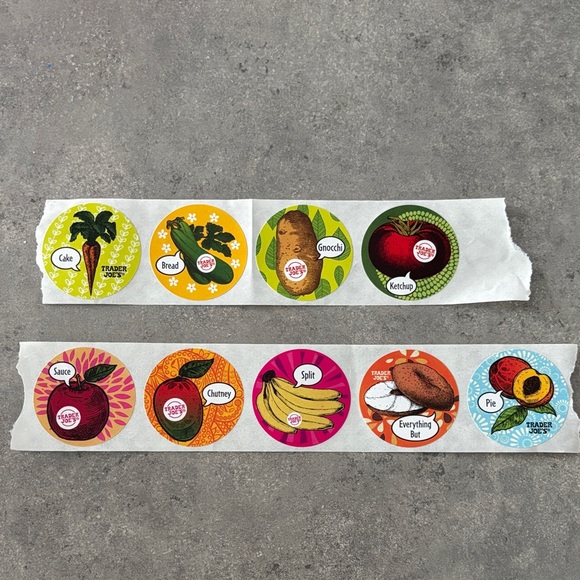 Add a splash of color to your items with Trader Joe's vibrant sticker set. Perfect for labeling and decorating.