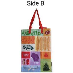 Vibrant Trader Joe's Wisconsin-themed reusable tote with 6-gallon capacity, perfect for shopping.