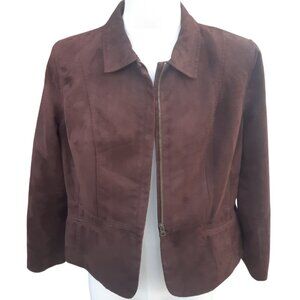 Tradition 16P Faux Suede Zip Up Women's Chocolate Brown Lined Jacket