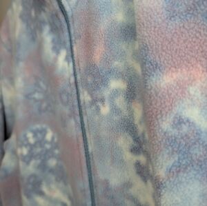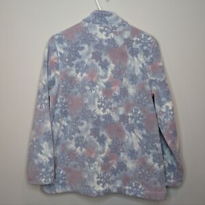 Tradition Country Blue Pink White Snow Fleece Grandma Zip Up Sweater Medium