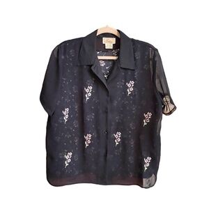 Tradition Vintage Navy Two Piece Blouse Set.Size Large-button up-Cami attached.