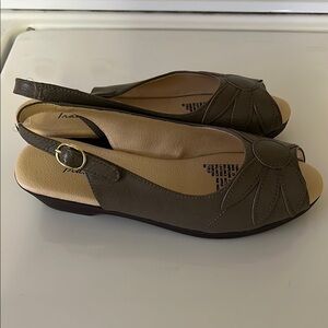 Step out in style with 's elegant brown peep toe slingback shoes. Perfect for any occasion, these shoes offer both comfort and sophistication. Made in China, leather upper. “Sabrina” style, size 6. NWOT