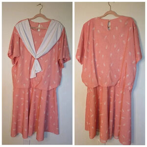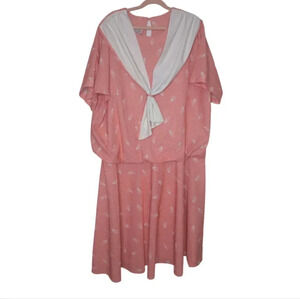 Tradition by Sears Pink/White Plus Size Drop Waist Short Sleeve Midi Dress