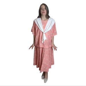 Tradition by Sears Pink/White Plus Size Drop Waist Short Sleeve Midi Dress