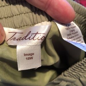 Tradition size 18W pale green skirt, back elastic, embellishments on front, new