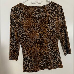 Tradition women 3/4 sleeves leopard print V neckline soft lightweight blouse 10