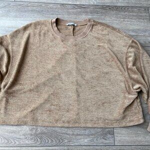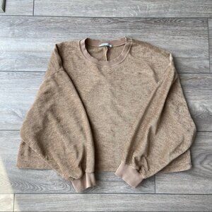 Trafaluc by Zara Tan Drop Shoulder Cropped Pullover Sweater