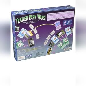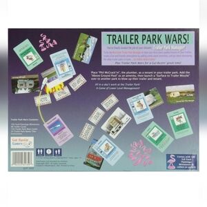 Each player arranges 12 trailers in front of them shaped like a clock. In the middle are randomized cards that represent the name of the player's trailer park. This has no effect on game play.