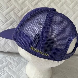 Some yellowing on the underside. Has been freshly laundered, so you are getting a clean hat that is ready to wear. Vintage Transformer purple hat. Would fit ages 8+. In ok condition. Will price accordingly. It’s sure to make your little Transformers fan smile when they receive this in the mail!