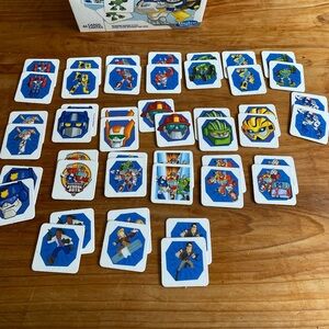 Classic little memory skill/matching game for the Transformer Rescue Bot fans out there. Pre-loved by my kiddo but he was already a little too old when he got this so can’t say it was played with a ton. Box is in great shape. Only thing to note is box says it comes with 48 cards and I counted 46. All have a matching pair but not sure which two tiles would be missing. Please feel free to request measurements you may need or send questions you have before purchasing.