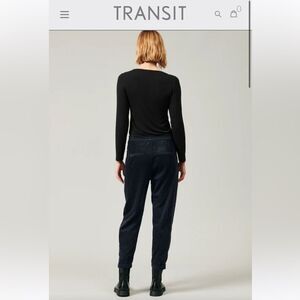 Transit Par Such Comfort fit pant with elastic waist in black corduroy