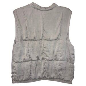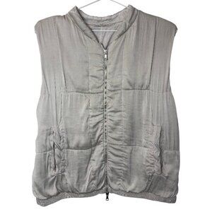 A Transit Par Auch Zip Up Puffer Vest. It features a full-zip front, and side pockets. The sleeveless cut makes it ideal for layering. This vest embodies that aesthetic with its clean lines, neutral color palette, and emphasis on high-quality materials and craftsmanship.