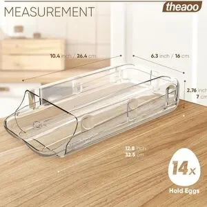 theaoo Egg Holder for Fridge, Automatic Rolling Egg Container for Refrigerator, Clear Plastic Egg Dispenser, Stackable Eggs Organizer with Quick Removable inner Tray For Organizers and Storage, 1Pack