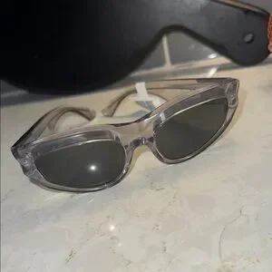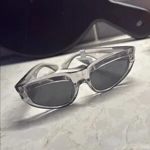 Stylish transparent rectangular sunglasses. Perfect for a modern look.