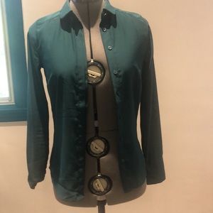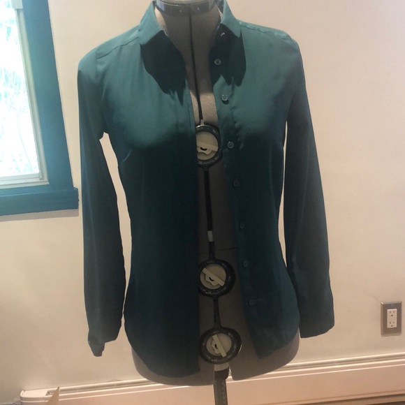 Soft light blouse transparent dark turquoise, great for the office over a Cami or under a wool top