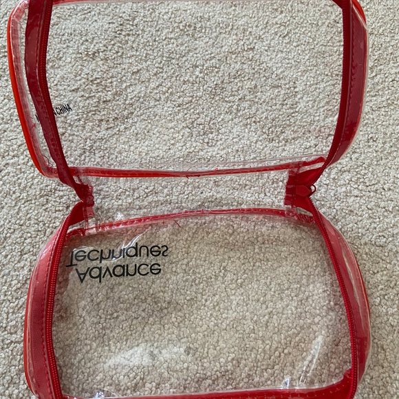 Transparent clear red wide all round zip closure cosmetic case toiletry bag new
