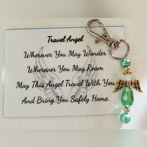 travel guardian angels clip on your purse, backpack, luggage, or lanyard. custom made in your choice of color.