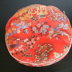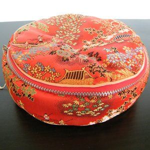 A nice travel jewelry pouch, made of Chinese silk with very thick padding. Will keep your jewelry / trinkets secure. The lining is pink sateen.