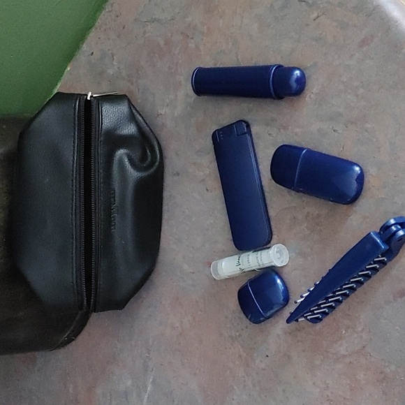 Ugo Vanelli Paris travel packet with contents shown. 7 x 5. Case is in excellent condition. 2 small spots on top back as in pic. I believe those 2 spots are likely where a tag was. I have not attempted clean. It is difficult to see. Case is black, contents are blue.