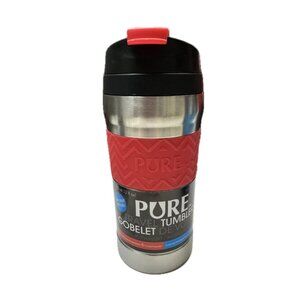 Vacuum Insulated Stainless Steel BPA-Free Travel Tumbler with fold-back stopper 355 ml / 12 fl oz. Keeps drinks hot for 6 hours and cold for 12 hours.