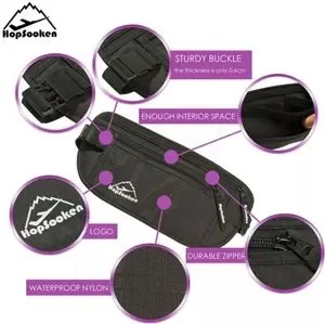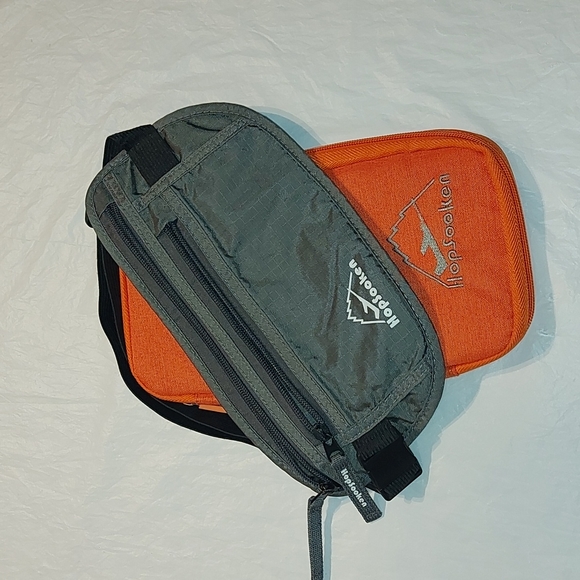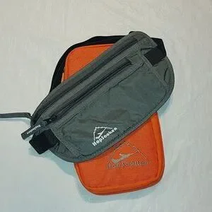 Grey waistband money holder - 2 zipper pocket, with mesh pockets inside to keep organized. Stretchy waistband. fits flat under you cloths