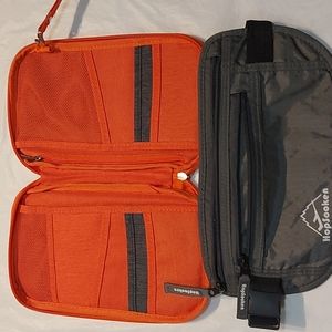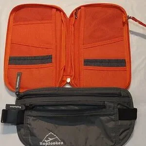 orange passport holder- maybe compartments and pockets for anything you might need to travel