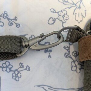 Cotton & canvas material with suede trim, accented in nickel plated hardware.