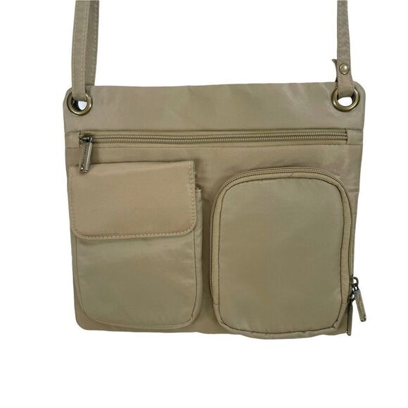 Travelon Tan Nylon Crossbody Bag Zipper Pockets
