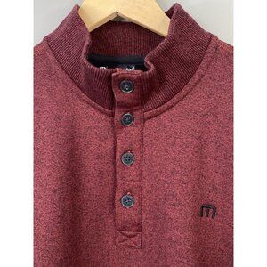 Travis Mathew 4 Button Red Long Sleeve Micro Fleece Pullover Sweater Men’s Large