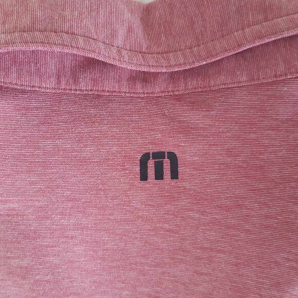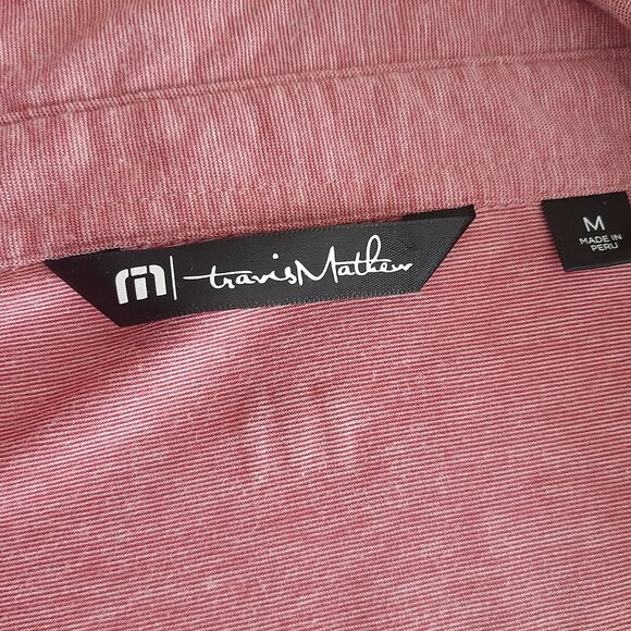 Really nice Travis Mathew Golf Shirt in a Men's Medium. Coral colour with strip of graphics across the chest. Golf shirt is in really nice condition. Minor wear and no notable flaws.
