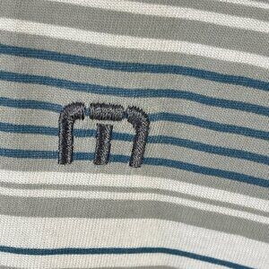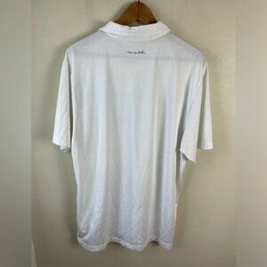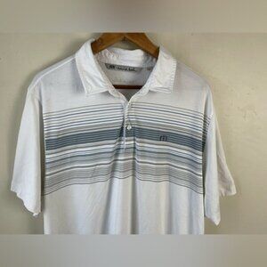 Travis Mathew Polo Shirt Mens Large White Lightweight Golf Casual Flex Striped